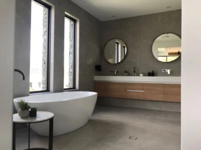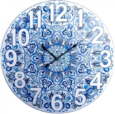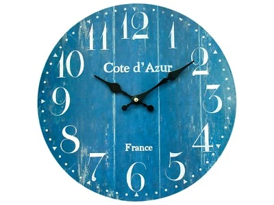 34cm diameter made from mdf with printed timber boards design soft grey colour very versatile and ideal for neutral palettes contrast black hands and large bold white numbers easy to read from a distance will complement many home styling themes including coastal mediterranean hamptons marine nautical modern and more ready to hang requires 1x aa battery not included free.